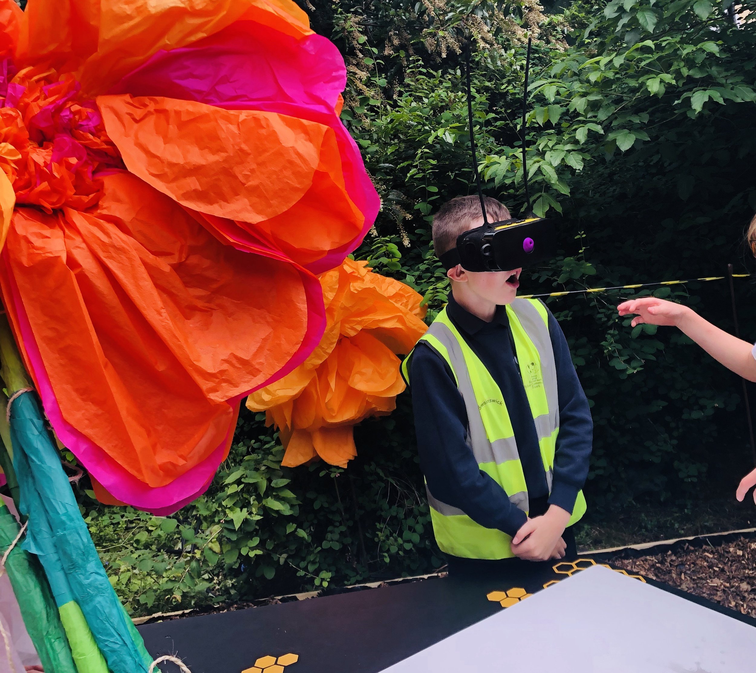 A combination of digital and analogue approaches was used, including VR and AR headsets, UV-vision simulations, lenses and mirrors. These immersive devices encouraged visitors to consider how bees process complex sensory information, while also questioning how humans perceive the world.
